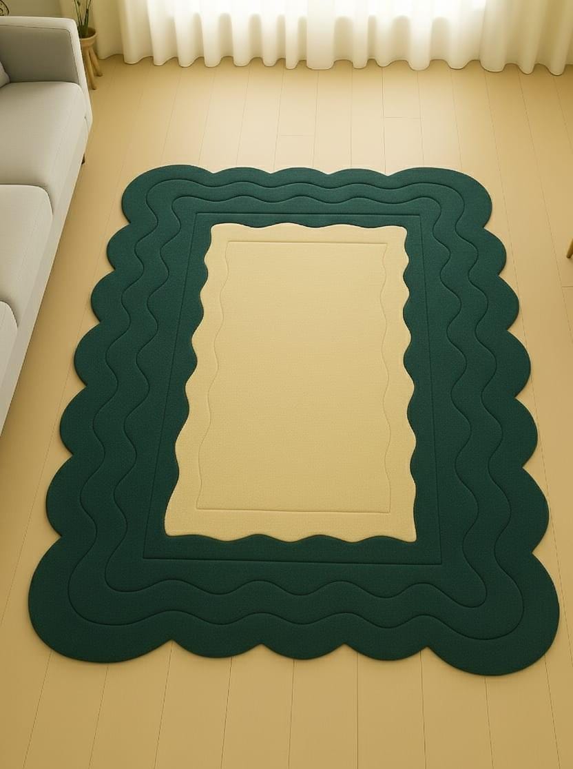 Transform your home with this Modern Wavy Edge Area Rug, designed to bring softness, elegance, and contemporary style to any interior. The rug features a smooth, sculpted wave border in a calming green-and-beige palette — a combination loved across UK, US, and European homes for its clean, modern aesthetic.