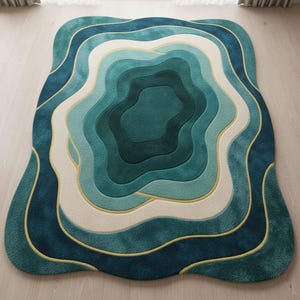Abstract Geometric Area Rug, Modern Color Block Rug, Pastel Irregular Shape Rug, Hand Tufted Wool Rug, Minimalist Living Room Bedroom Decor