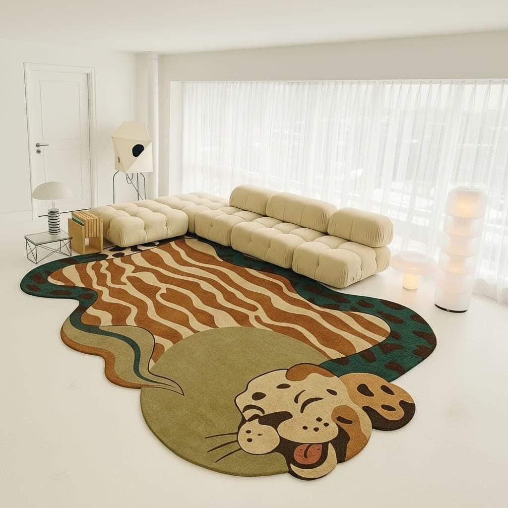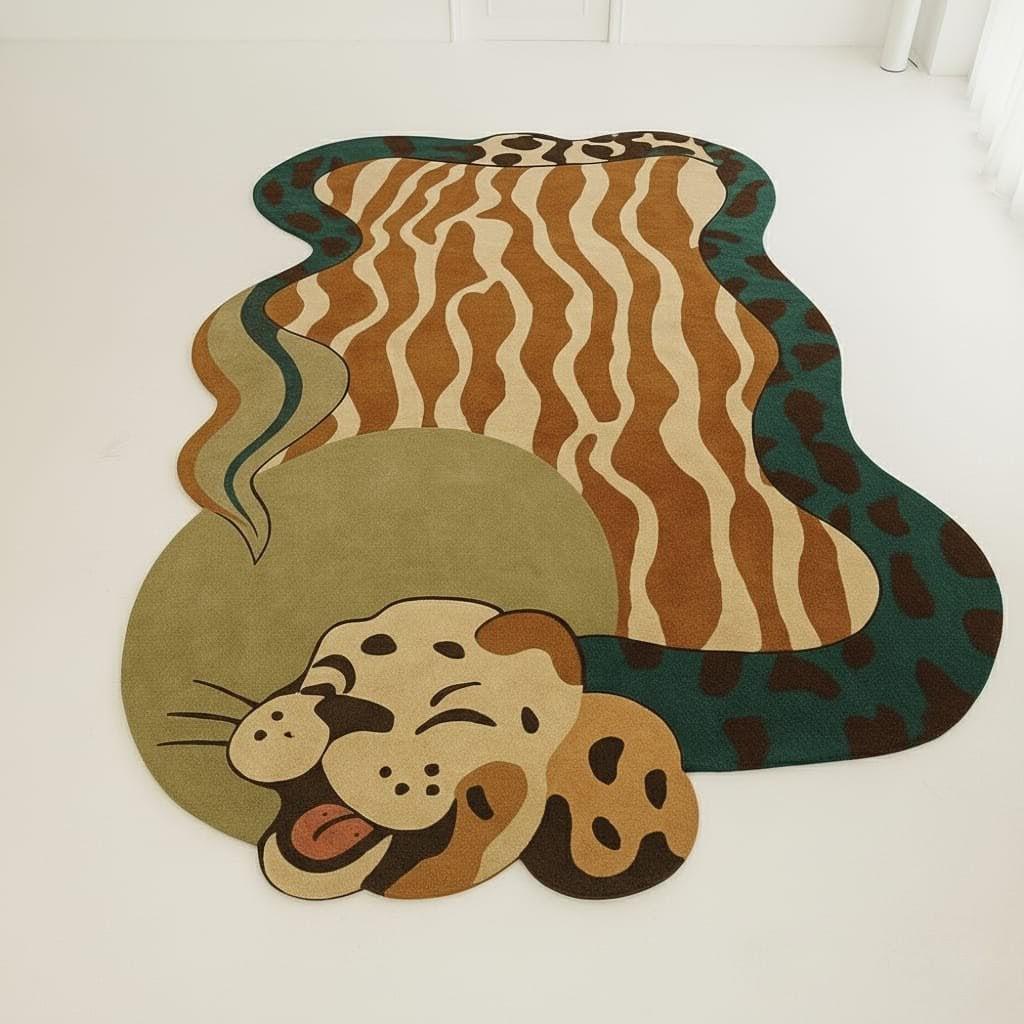 Playful Leopard Shaped Rug | Modern Art Carpet for Living Room | Custom Handmade Decor