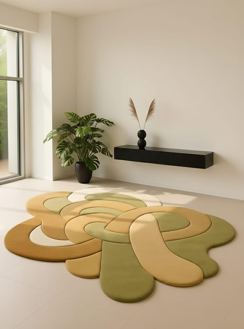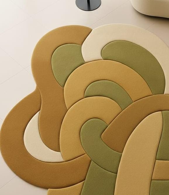Each piece is crafted with care, giving you a luxurious, soft-underfoot feel and long-lasting durability. The earthy palette blends seamlessly with minimalist, modern, Scandinavian, boho, and neutral décor styles. Whether placed under a curved sofa, center table, or open space, this rug becomes a statement centerpiece that turns your room into a designer setting.