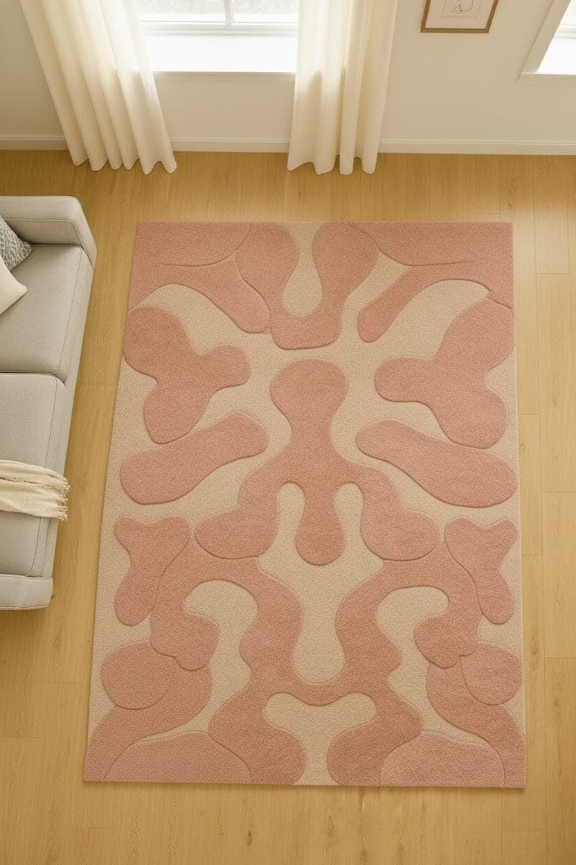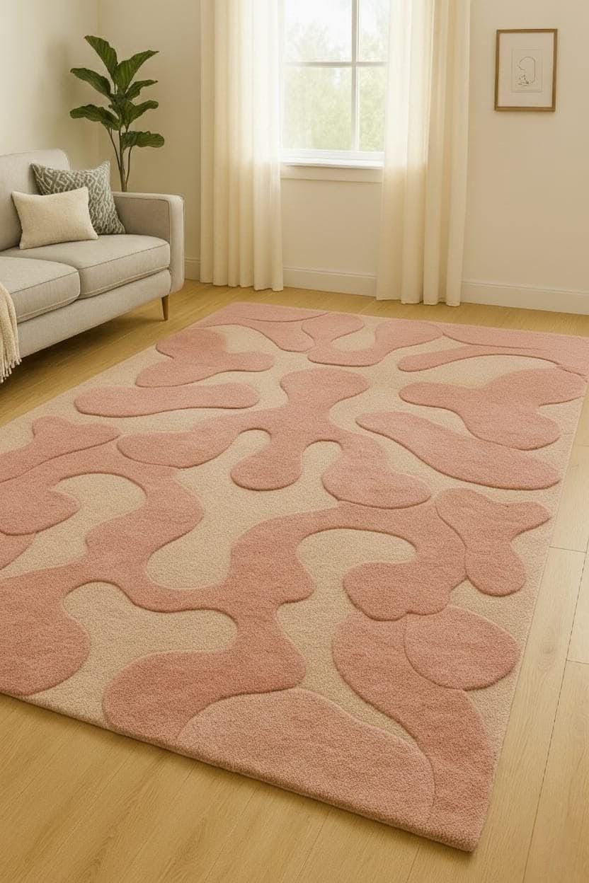 Transform your space with this Modern Pink Abstract 3D Carved Rug, designed to elevate any room with soft texture, sculpted patterns, and a calming aesthetic. This premium rug features a raised 3D effect, smooth contemporary curves, and a warm blush-cream palette that blends beautifully with modern, minimalist, Scandinavian, or luxury interiors.