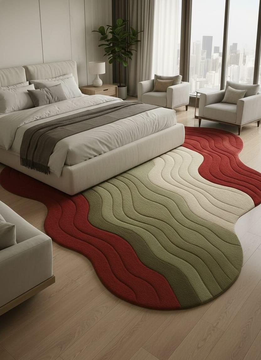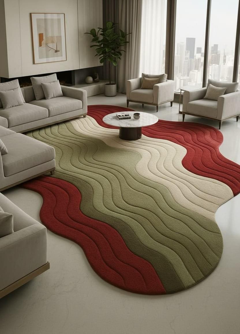 Modern Organic Shape: Unlike regular rectangle rugs, this wavy organic silhouette instantly becomes a statement piece.