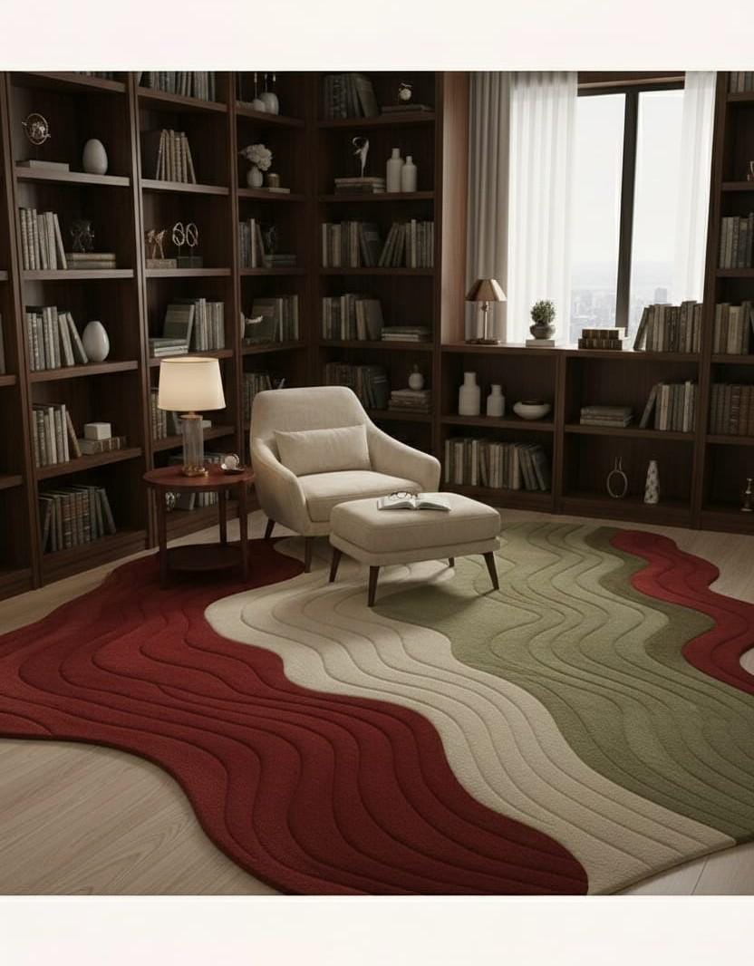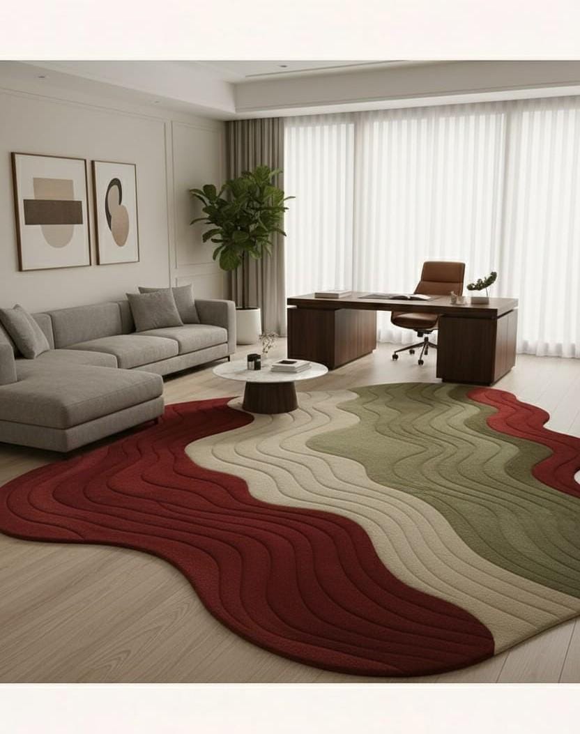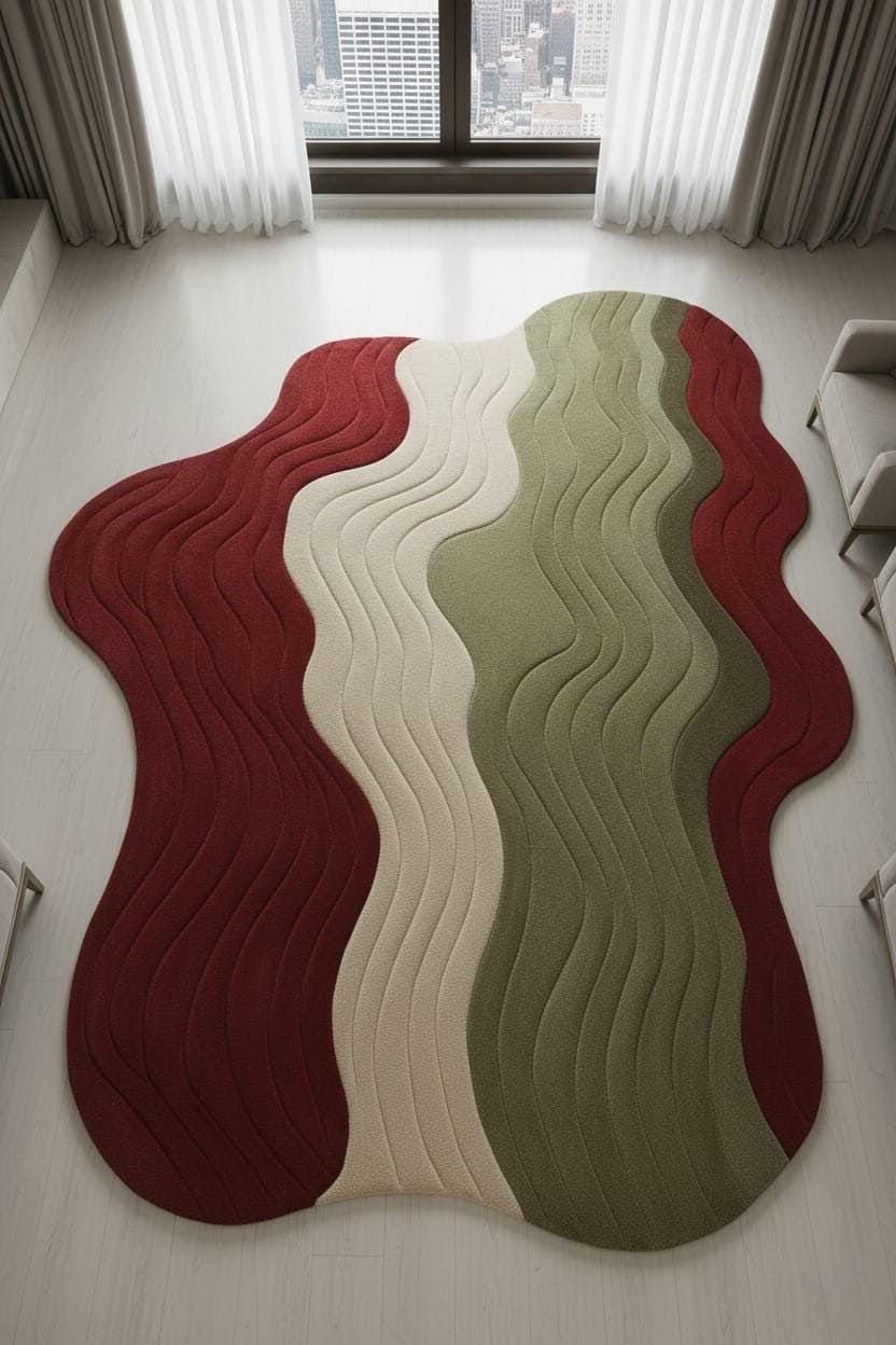 Modern Wavy Abstract Area Rug | Luxury 3D Textured Carpet | Organic Flow Shape Rug for Living Room, Bedroom, Office | Custom Sizes | Soft Premium Floor Decor