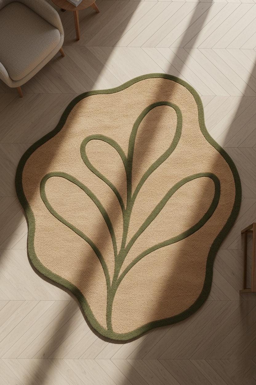 Bring nature-inspired elegance into your home with this Leaf Shaped Hand Tufted Wool Rug, designed to add warmth, texture, and organic beauty to any space. Featuring a soft beige base with sculpted green botanical lines, this rug creates a calming yet statement look perfect for modern, minimalist, or earthy interiors.