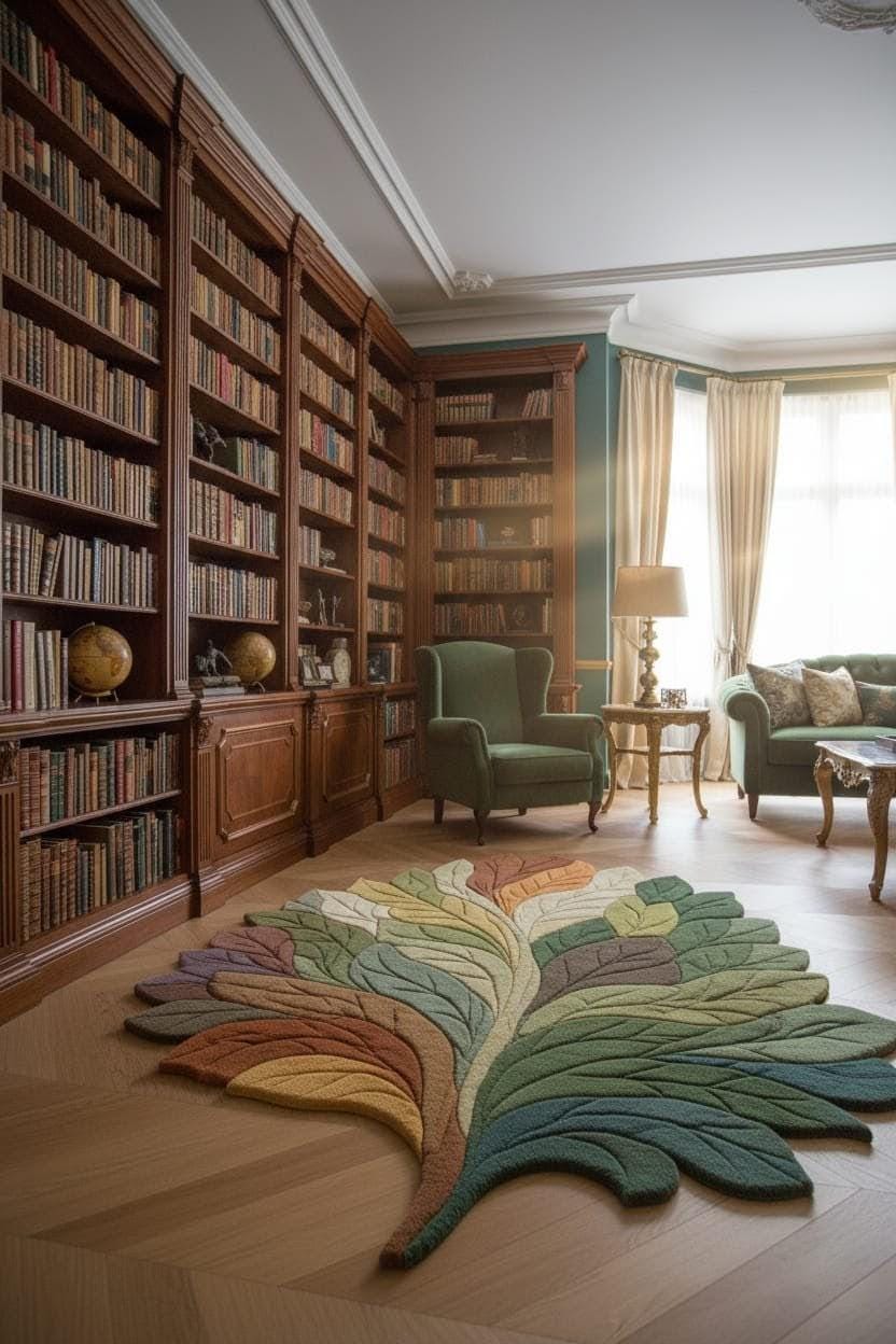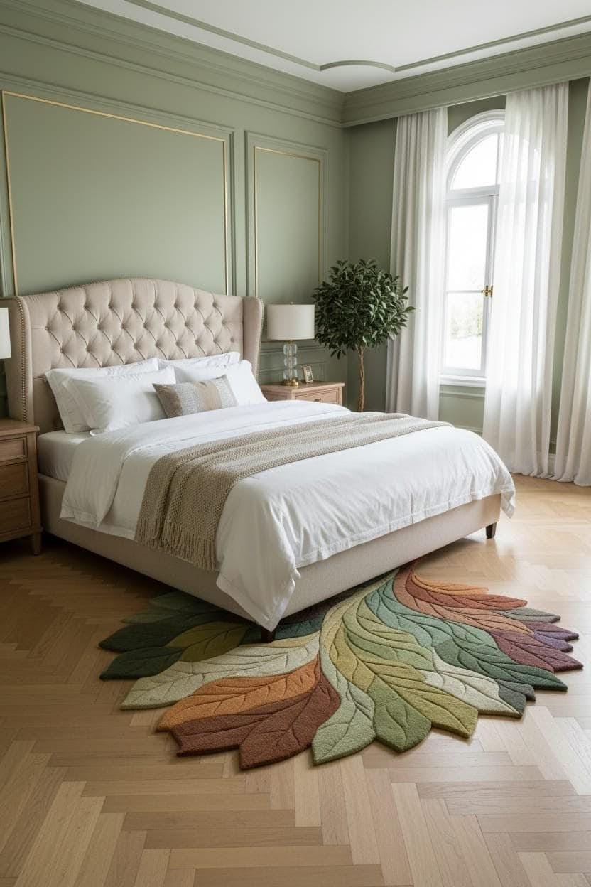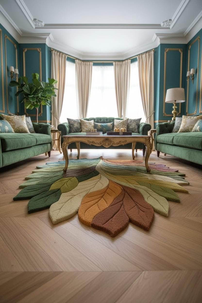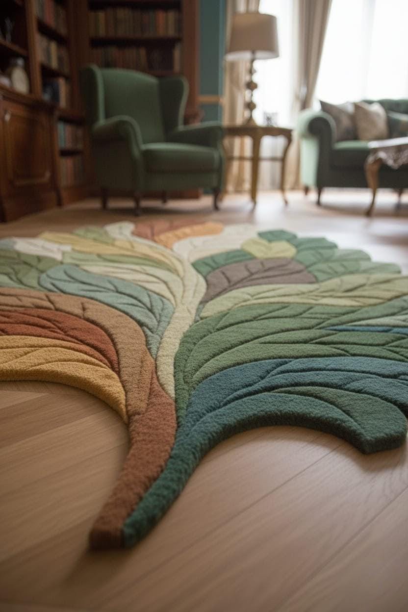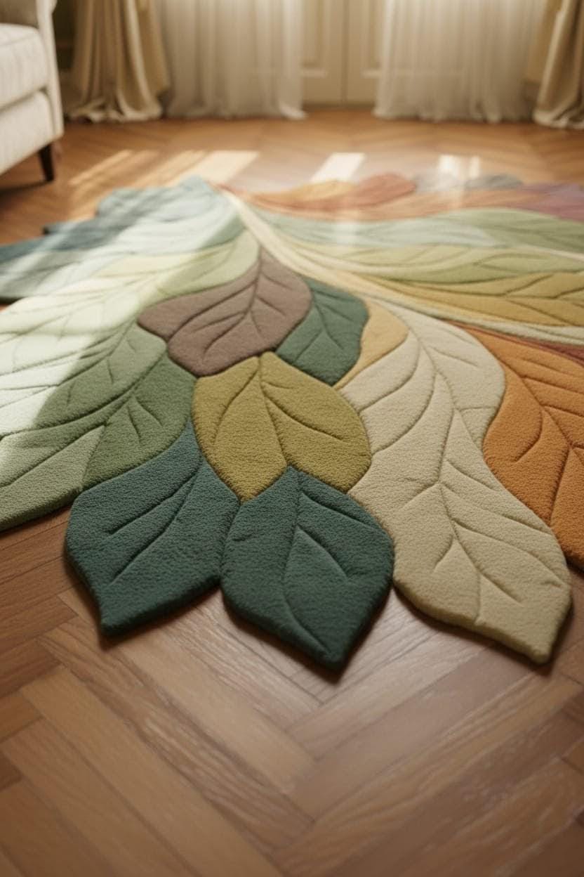 ng nature indoors with this hand tufted leaf-shaped rug, designed to add warmth, color, and elegance to any space. Inspired by natural foliage, this rug features rich earthy tones that blend beautifully with modern, classic, and luxury interiors.