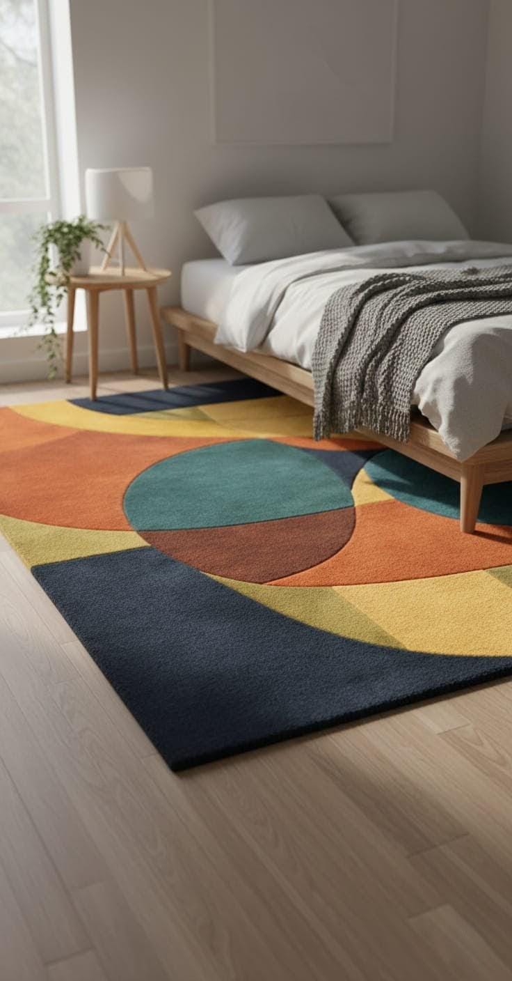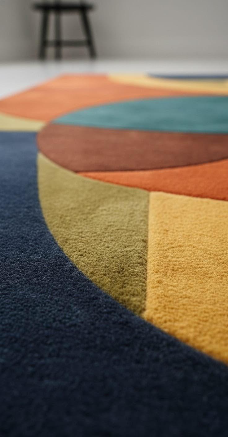 Modern Abstract Area Rug, Geometric Colorful Carpet, Mid Century Style Rug for Living Room, Handmade Wool Rug, Custom Size Available