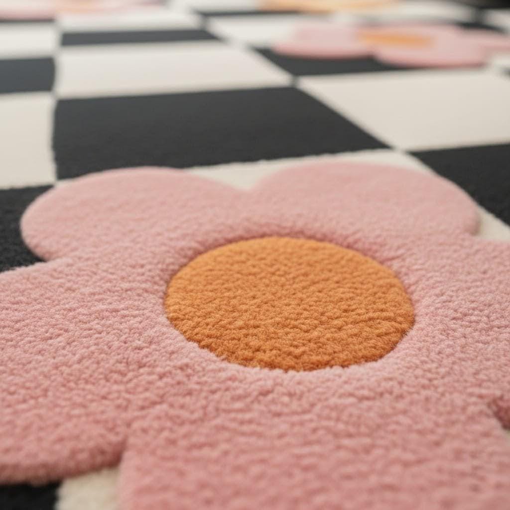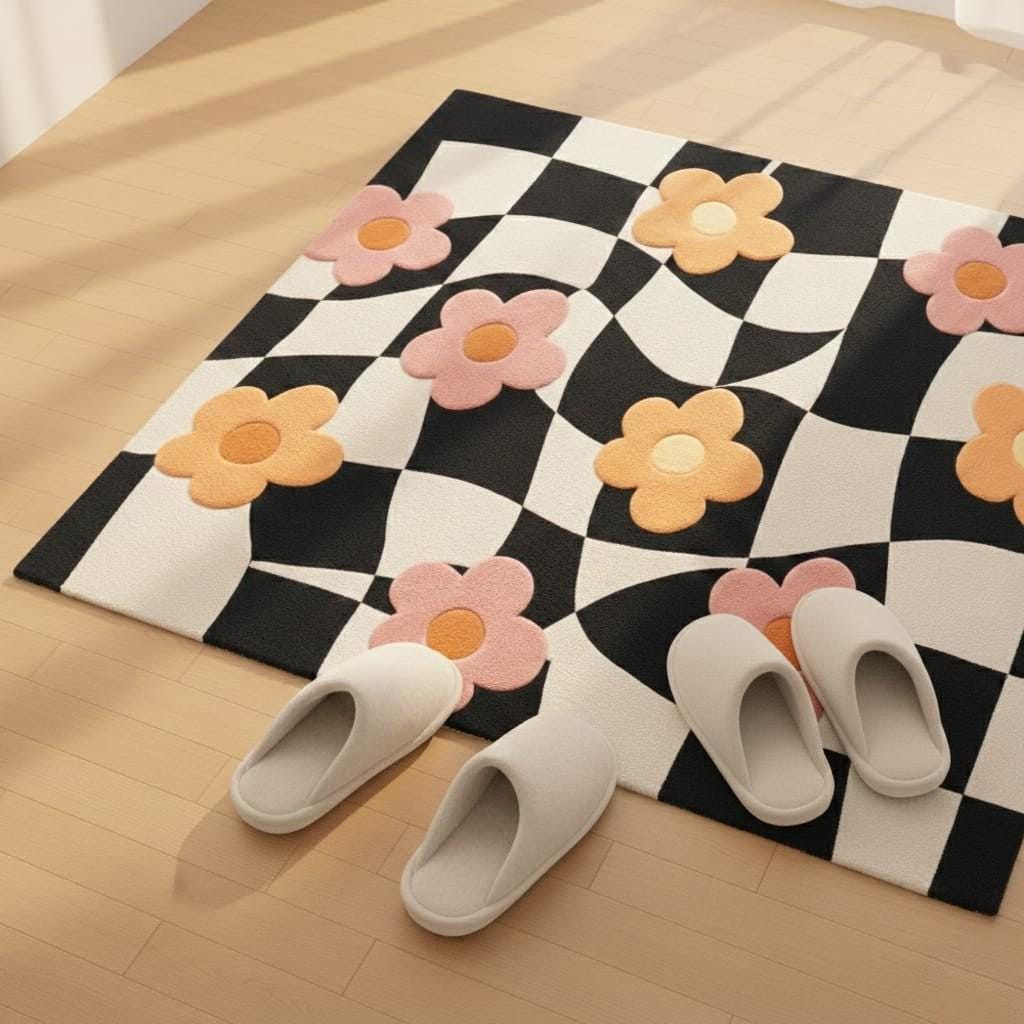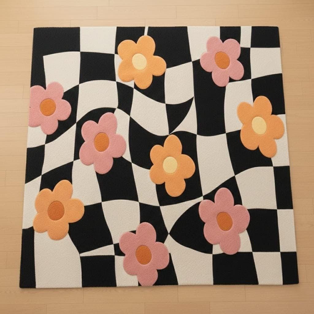 Bring joy, color, and modern charm into your space with this hand-tufted flower checkered rug 🌸
