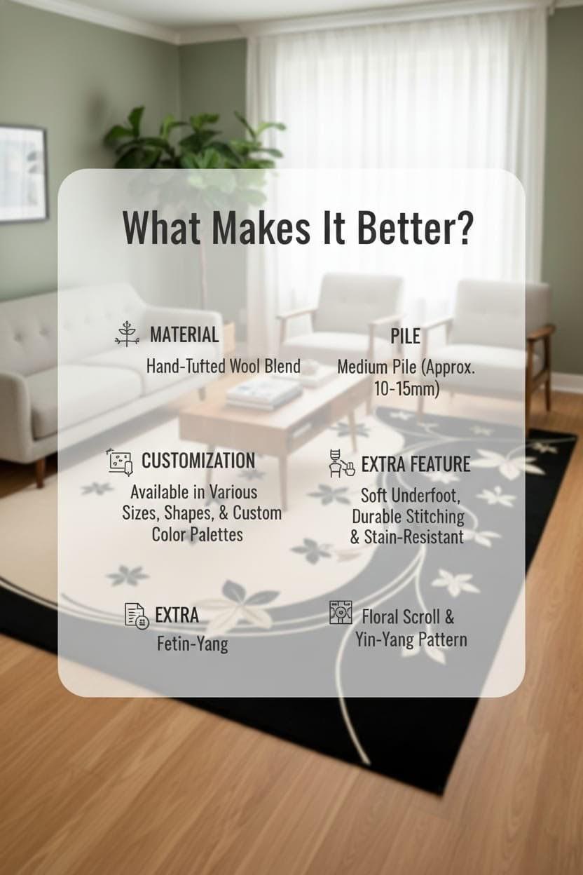 Handcrafted with care, this rug blends soft texture, durability, and timeless design, making it ideal for living rooms, bedrooms, offices, or lounges. The neutral black & cream color palette easily matches any décor while adding a premium designer feel.
