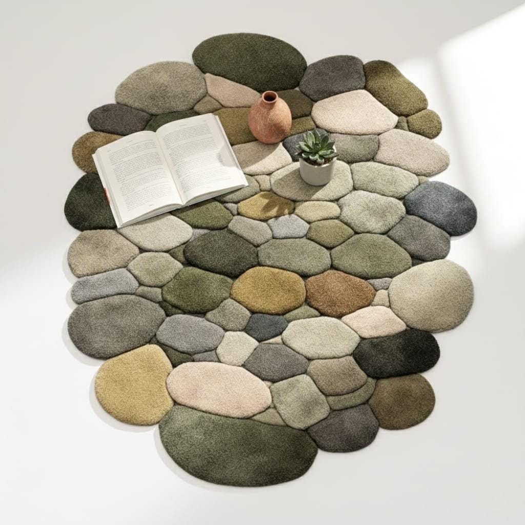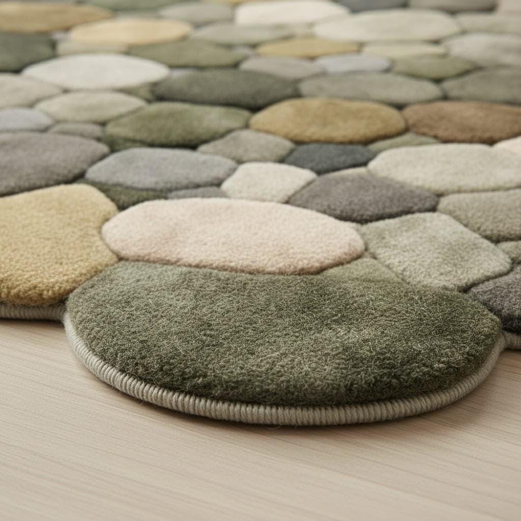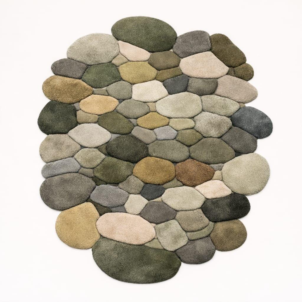 Bring nature indoors with this hand-tufted pebble rug inspired by smooth river stones.