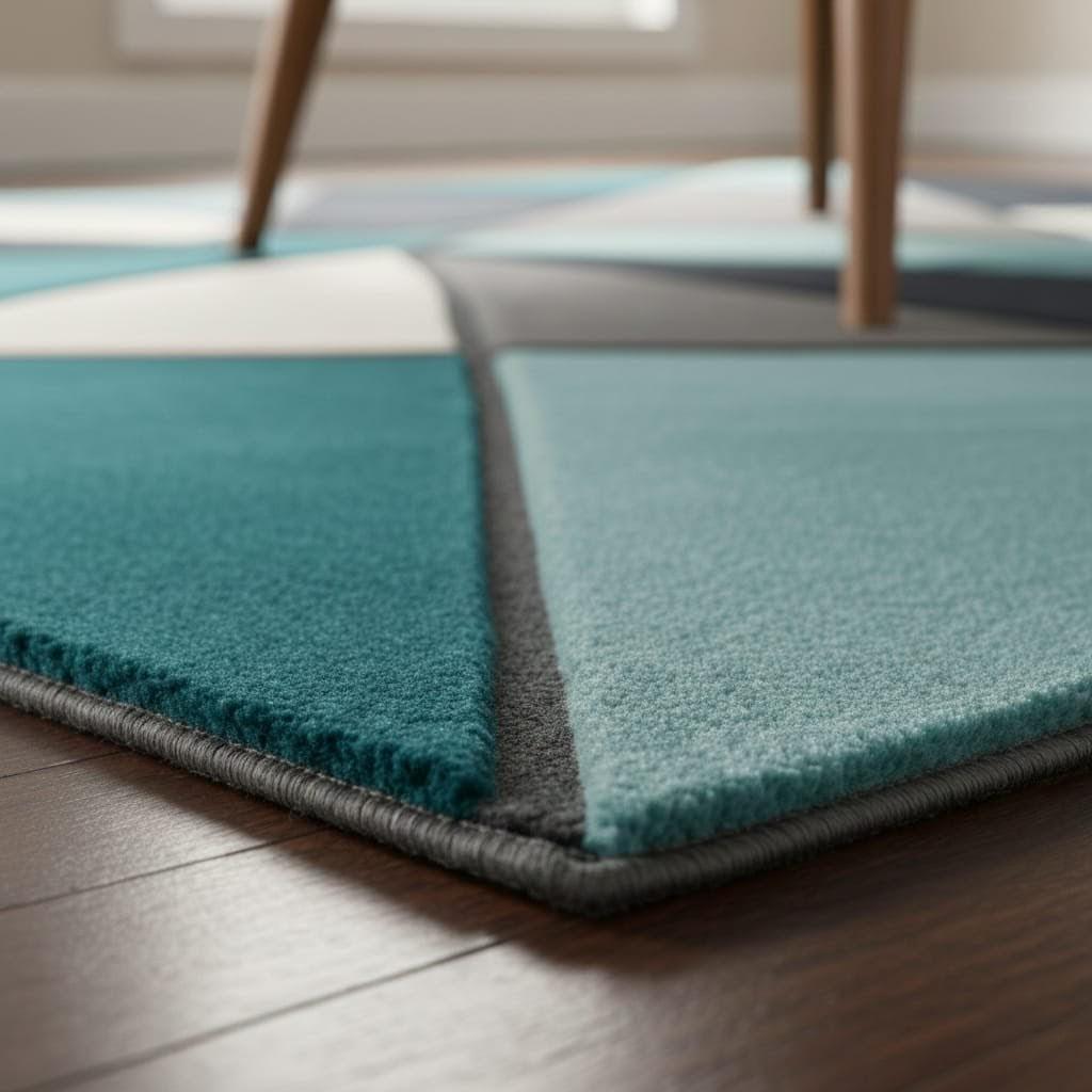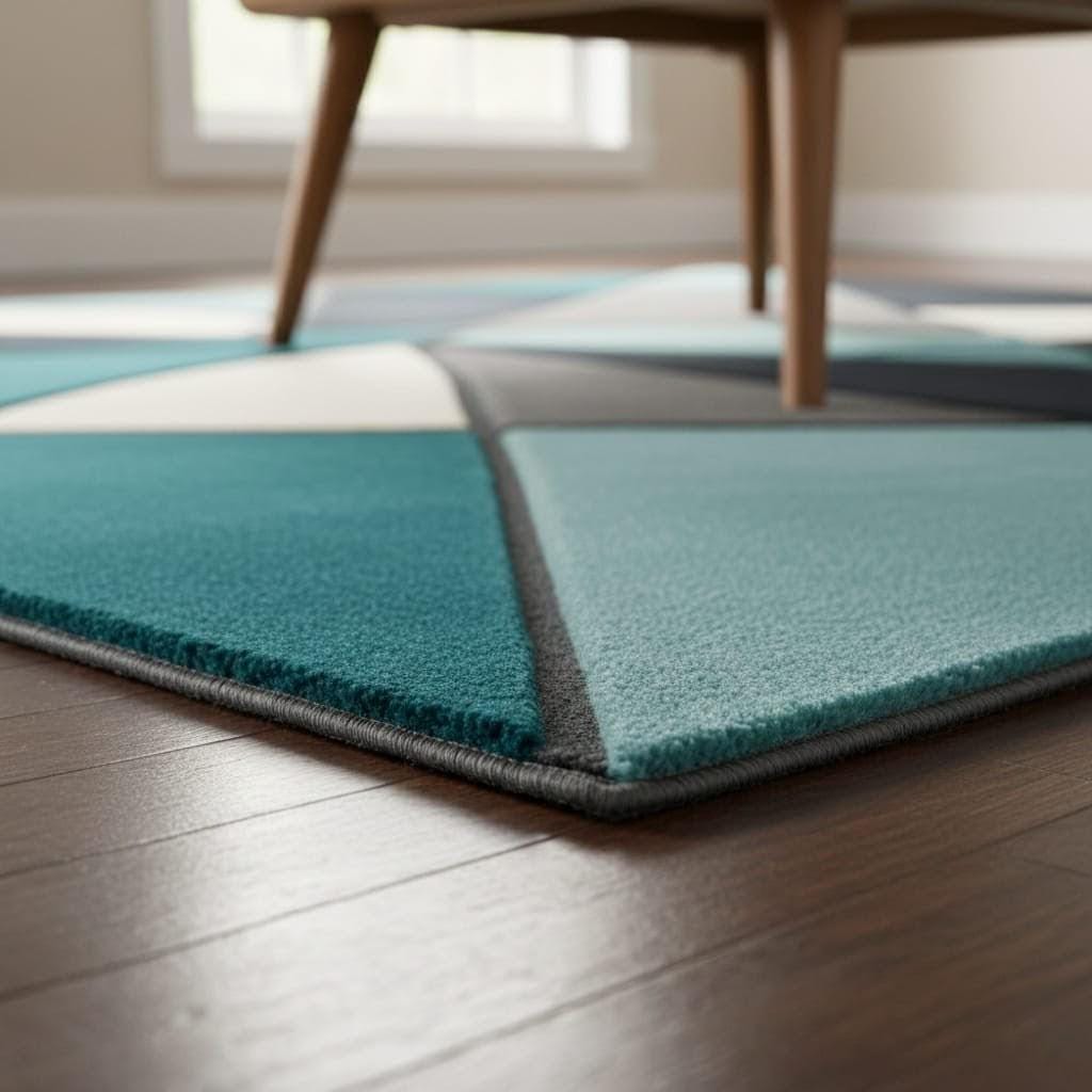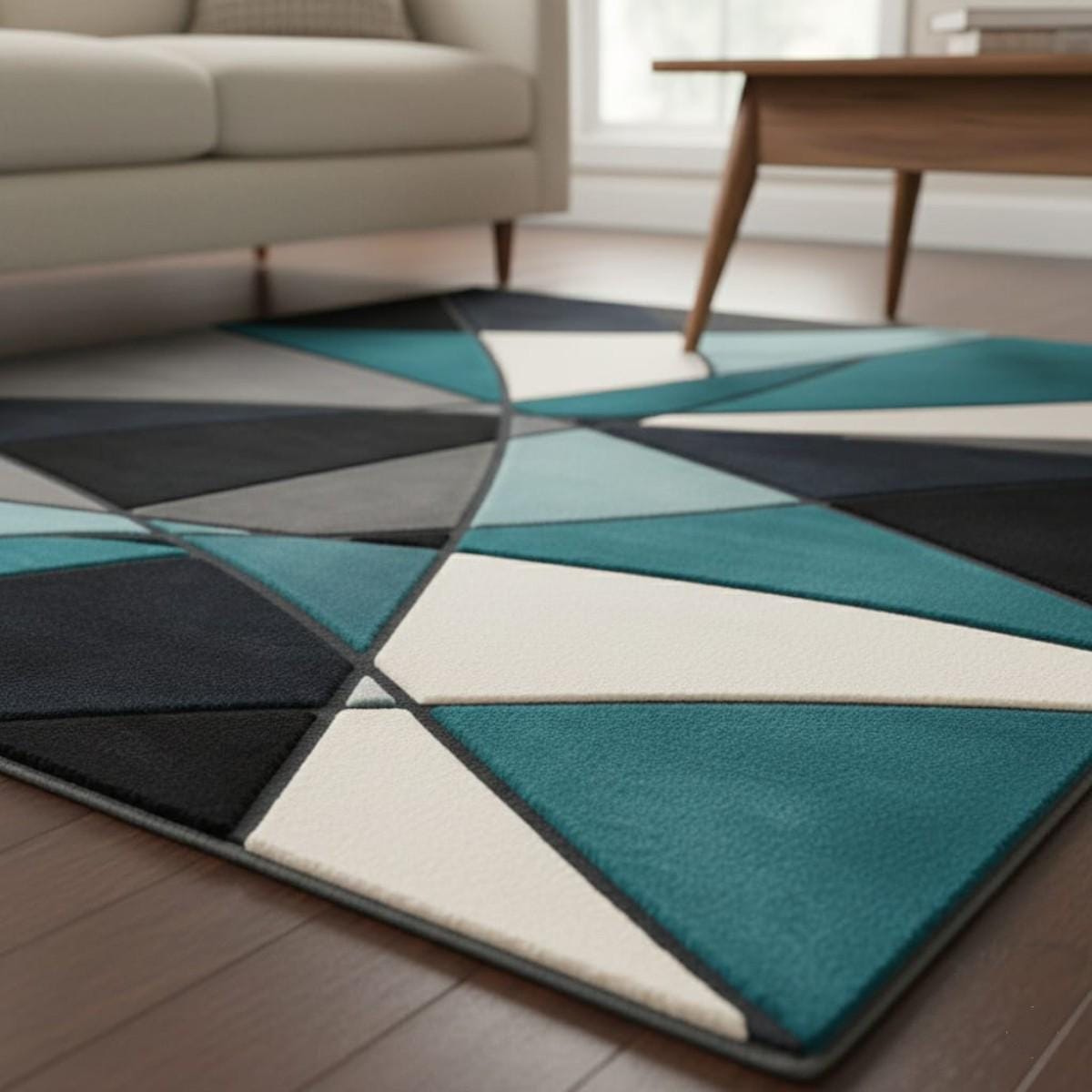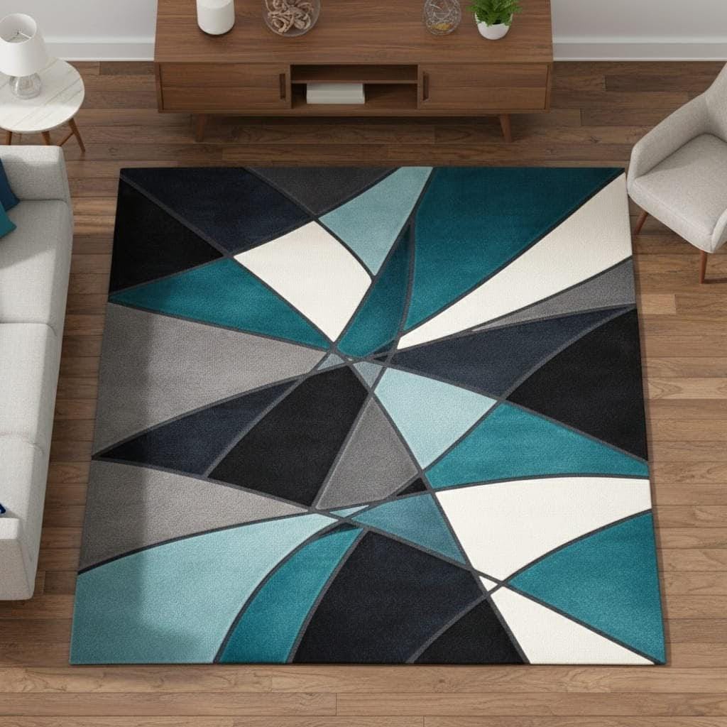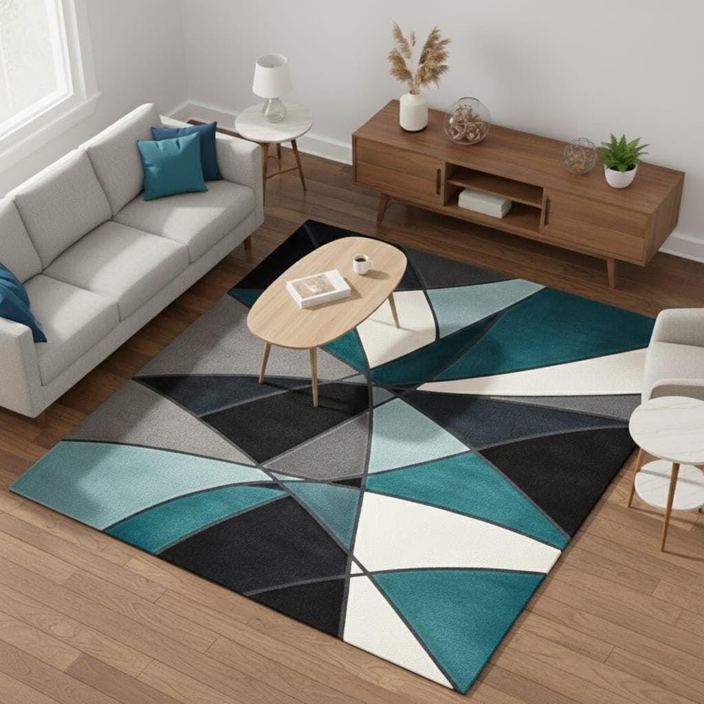 Modern Geometric Area Rug, Abstract Teal Black Living Room Carpet, Contemporary Large Floor Rug, Mid Century Style Home Decor Rug