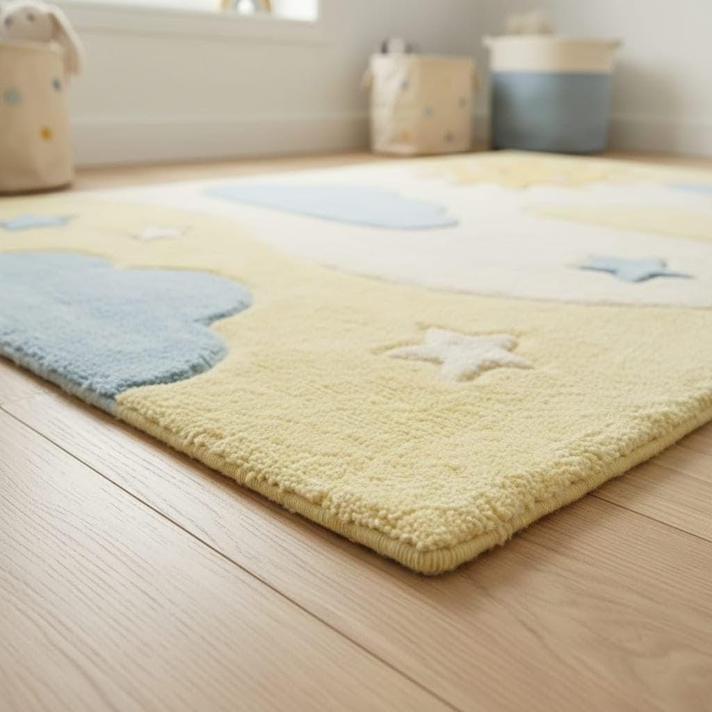The soothing yellow and blue tones blend beautifully with modern, Scandinavian, or minimalist nursery themes. This rug adds warmth while making the room playful and inviting.