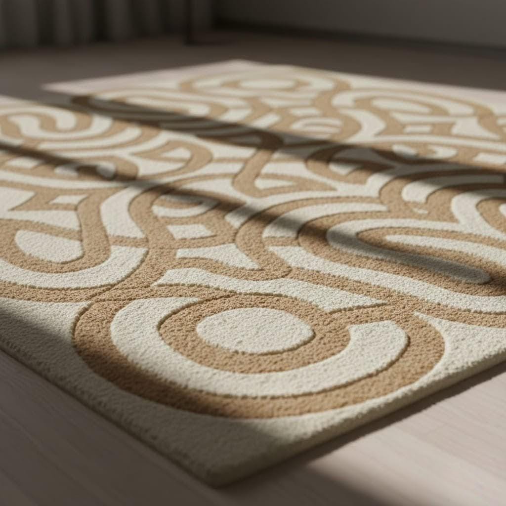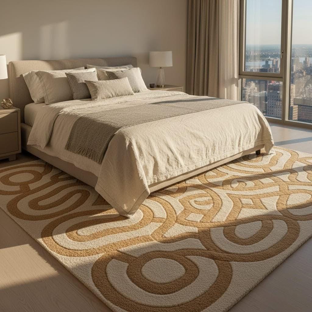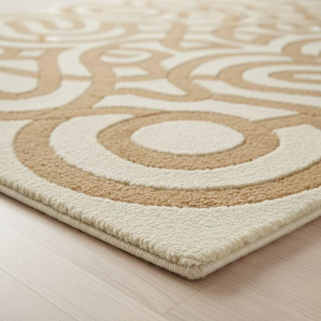 Bring warmth and modern elegance to your space with this Hand Tufted Modern Abstract Rug in soothing beige and cream tones. Featuring a bold geometric swirl pattern, this contemporary area rug adds artistic charm and texture to any living room, bedroom, or office.