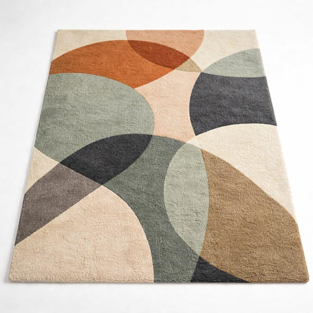 Bring warmth and artistic movement into your home with this Modern Abstract Earth Tone Area Rug. Featuring a beautiful blend of sage green, rust, beige, cream, and brown tones, this rug creates a calming yet stylish focal point for any living space.